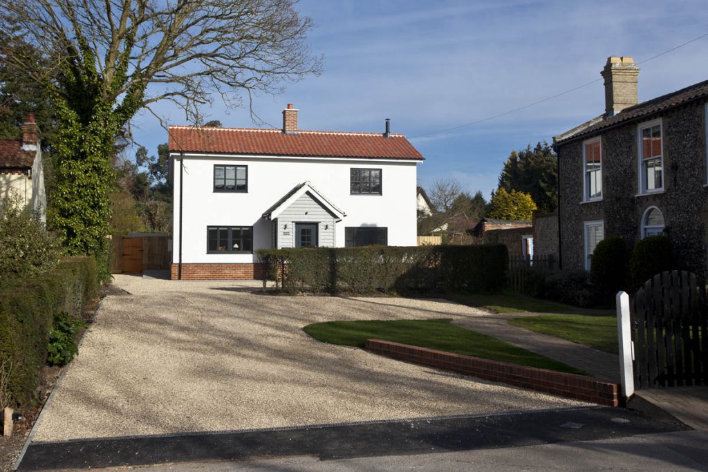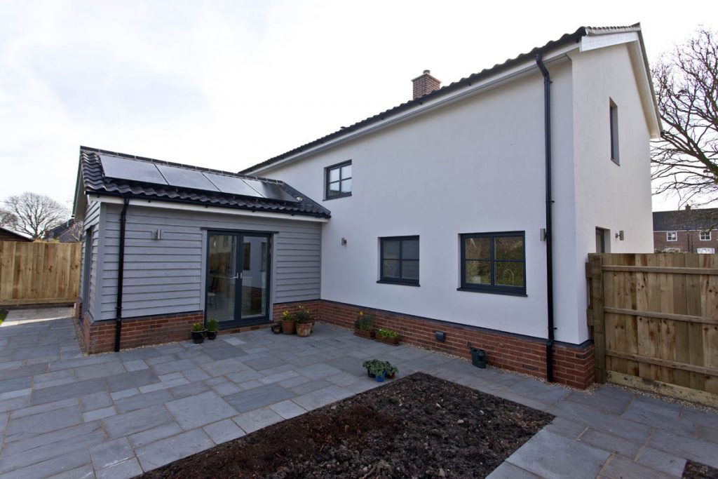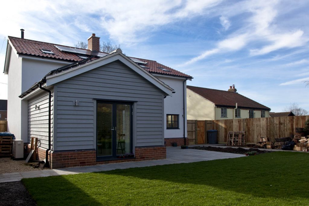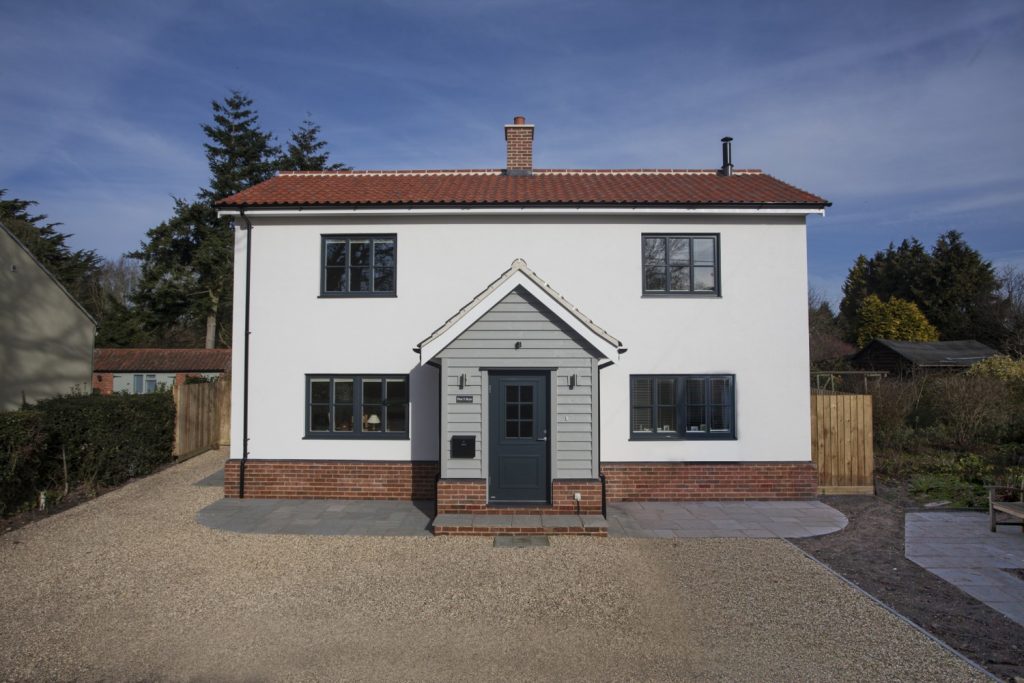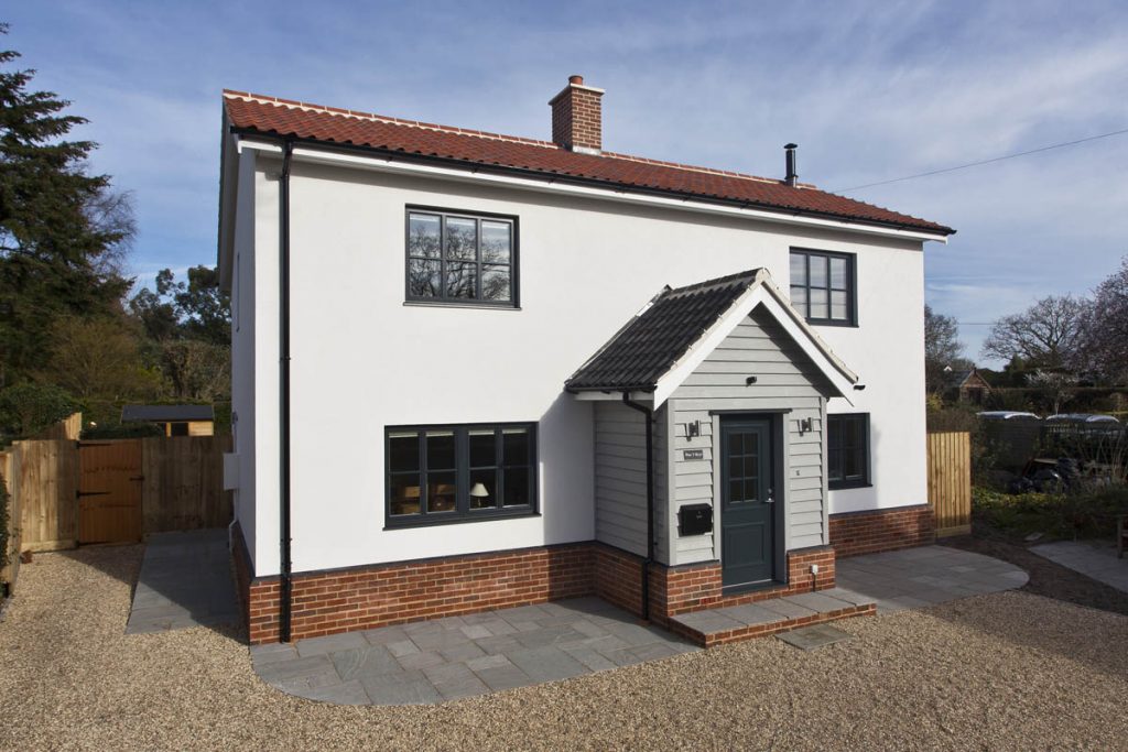 The result is a striking building designed with clean lines, benefiting from a durable low maintenance finish from a monocouche render system and aluminium finished windows and doors. The traditional brick plinth and timber weatherboard façade completes the traditional Suffolk cottage which offers the home owner superior energy efficient performance and low running costs for the future.