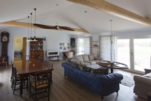That set the wheels in motion, and plans were soon underway. Svenskhomes supplies pre-manufactured kit homes, manufactured in Sweden, for builders and self-builders across the UK. Harry was soon looking at designs that would fit alongside the other older barns and properties on site, several of which are also listed. Local architect Peter Wells worked with the Standleys, advising on planning requirements. “Peter was positive about the concept from the start,” explains Harry, “He knew that an energy-efficient timber-frame home, like the one we had in mind, would be accepted by Mid-Suffolk council.” Once planning consent was approved, Harry and Peter worked together on the designs, with Harry even converting some of the old buildings on site into car garages.